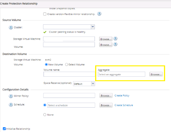 Set target aggregate for protection relationship not possible in System Manager 9.3